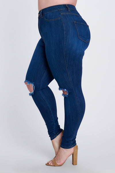 High Rise Skinny Jeans with rip at knees